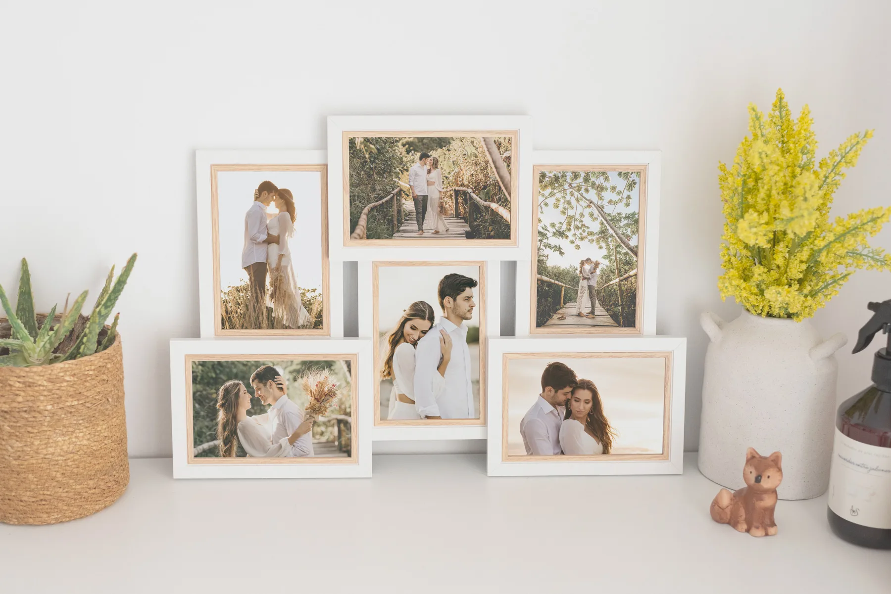 🖌️ Modelo 6 fotos · Espacio para 6 fotos de 10×15 cm. Dimensiones del marco: 45,5×32 cm.