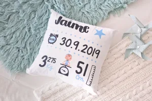 ¡Un cojín de nacimiento es un regalo lleno de suavidad y amor! Personalizado con su nombre, peso, talla, fecha y hora del nacimiento; es perfecto para colocar al lado de la cuna del bebé mientras crece.