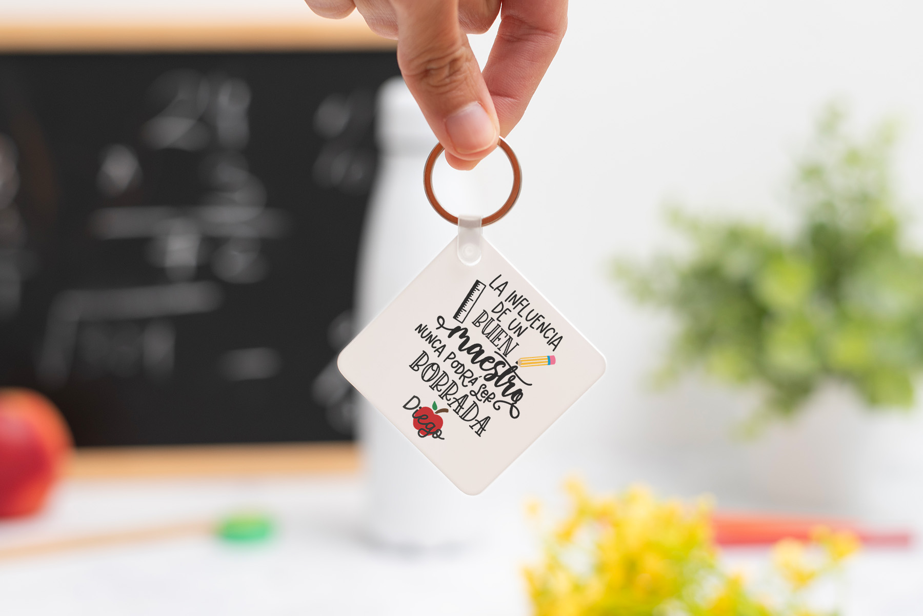 Inicio / Tienda / Ideas de regalo / Regalos para profes / Llaveros para profes / Llavero ‘La influencia de un buen maestro’