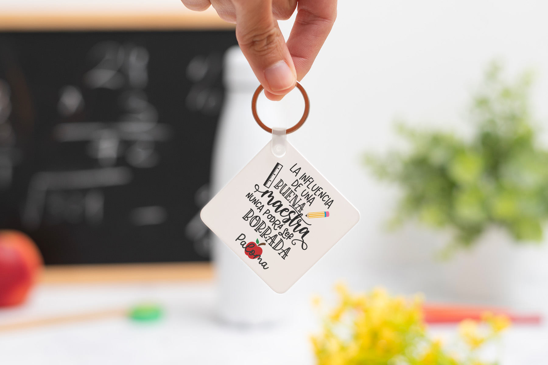 Inicio / Tienda / Ideas de regalo / Regalos para profes / Llaveros para profes / Llavero ‘La influencia de una buena maestra’