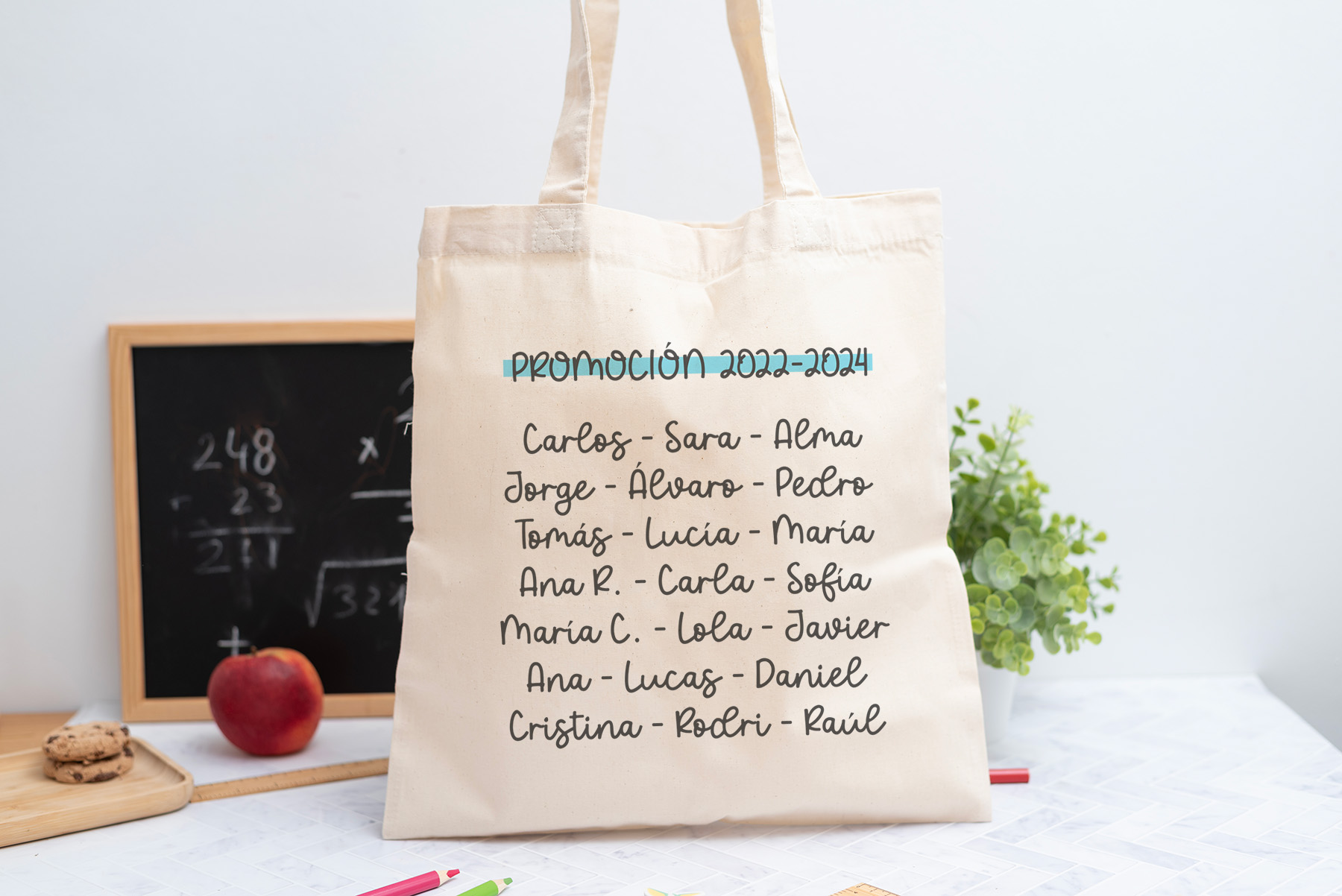 • Añade la promoción y los nombres de los alumnos en el reverso.