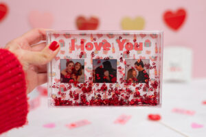 Tu fotografía más sentimental en una bola de nieve con forma de corazón. Además en su interior flotan pequeños corazones rojos. Un regalo super romántico para una ocasión especial. Impresión en papel fotográfico. Personalizable con una foto. Fabricada en acrílico transparente de gran calidad. Tamaño del corazón 9×9 cm. Tamaño de la imagen 9×4,5 cm.