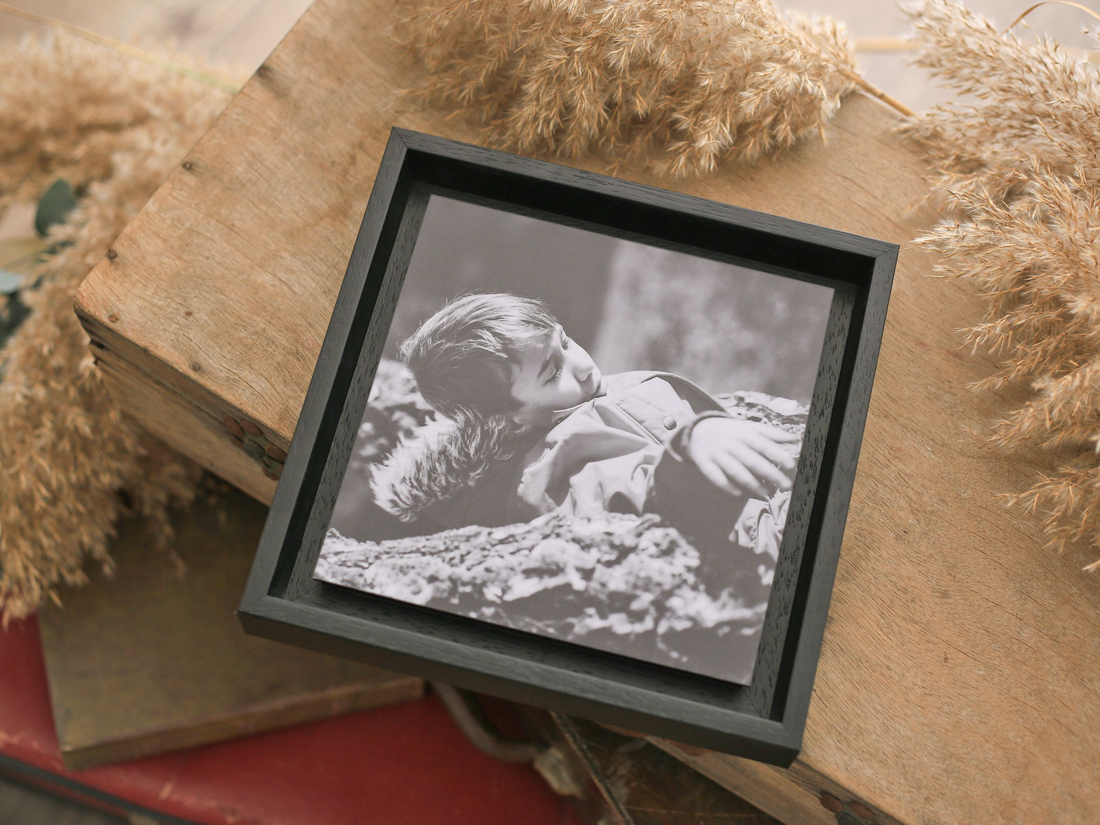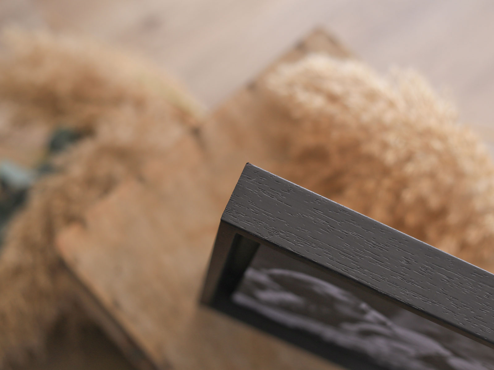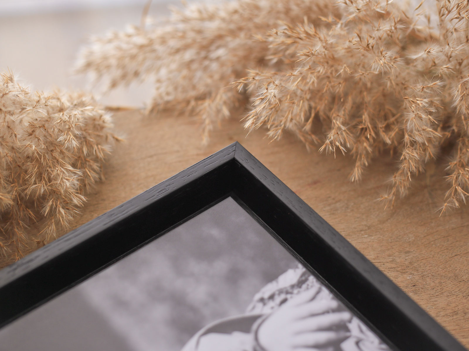 Un marco elegante que da profundidad a la fotografía. El grosor del marco (3,5 cm) permite ponerlo sobre una superficie lisa sin ningún tipo apoyo adicional.