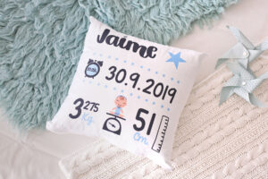 Una fecha, una hora, un peso y una medida pueden ser números sin importancia por sí solos, pero que, al unirlos a un nombre, llegan a adquirir un significado especial. Reúne todos estos detalles en un sencillo diseño y plásmalo en un cojín para crear un recuerdo que colocar en la cuna junto a tu…