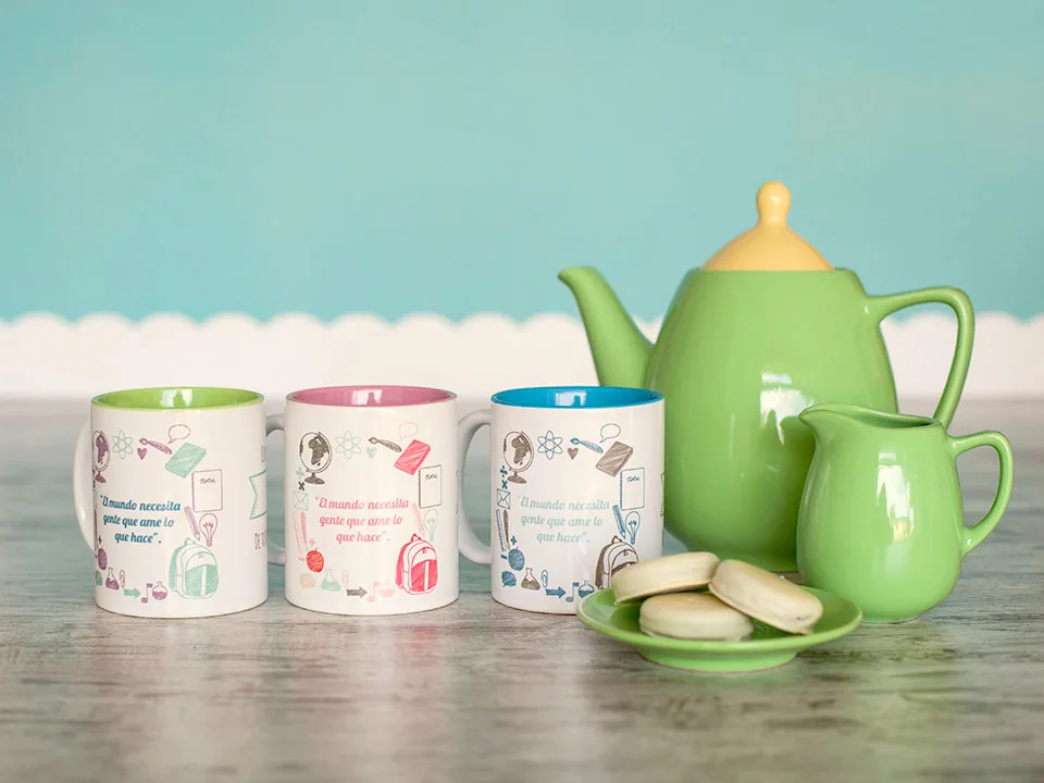 - Elige entre 9 colores del interior de la taza. Amarillo, azul, blanco, naranja, negro, rojo, rosa, verde y verde oscuro.