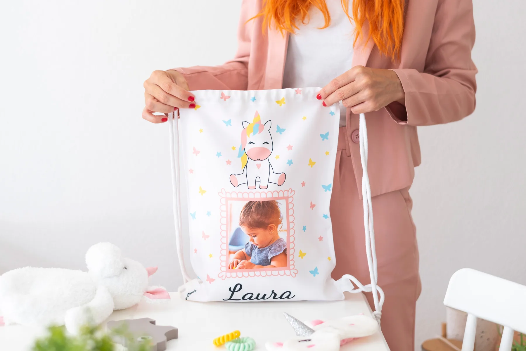 Nuestra mochila de cuerdas es el accesorio perfecto para llevar todas sus cosas guardadas. Ideal para actividades extraescolares, excursiones, tardes de parque, etc. Es ligera para que no le cueste llevarla, con sus dos cuerdas hace que sea fácil abrir y cerrar tirando de ellas, así pueden acceder al interior de la mochila infantil rápidamente. Son también fáciles de lavar y secar gracias a su material de 100% poliéster, pensado para nuestros peques todoterreno que pasean la mochila de cuerdas por doquier. La mochila va personalizada totalmente y así evitará que se pierdan. La mochila saco complementa muy bien con nuestro resto de accesorios, puedes meter a juego la bolsa de almuerzo, junto con la botella infantil y la caja de merienda. Además todavía tendría cabida para ropa de cambio por si las moscas. Listo para empezar el día.